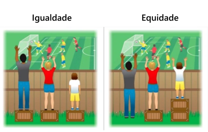 Confira a imagem abaixo que ilustra os conceitos de equidade e igualdade: